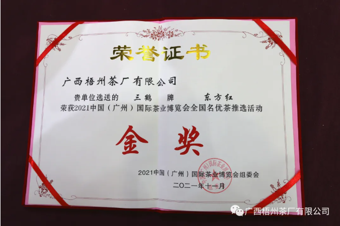 11月25至29日,2021中國(廣州)國際茶業(yè)博覽會在廣州廣交會展館隆重舉辦。廣西梧州茶廠有限公司攜三鶴六堡茶,在展會上與茶友們共享佳茗。在本次大會中,公司選送的【東方紅】六堡茶得到專家與評審們的一致好評,榮獲…